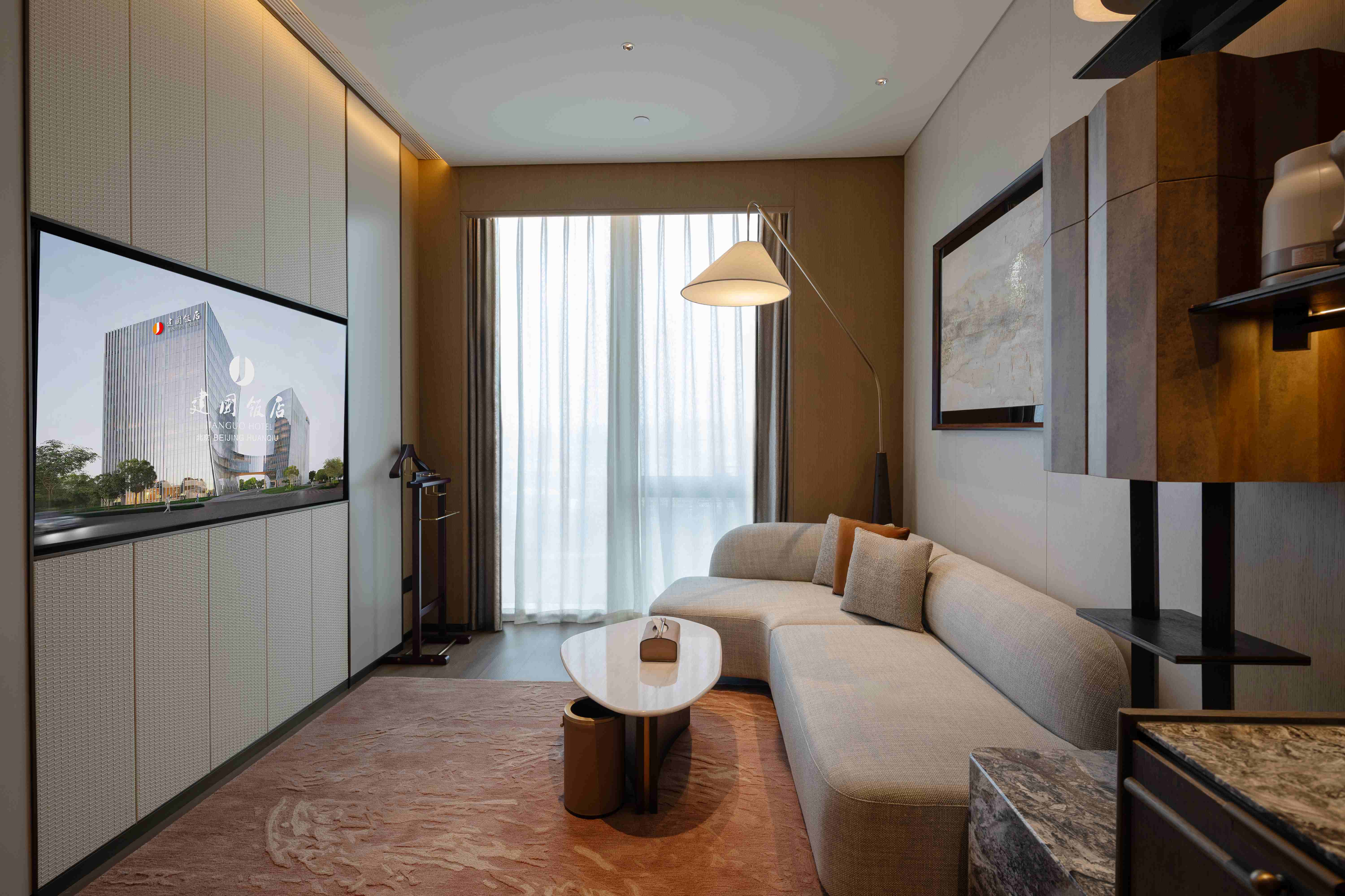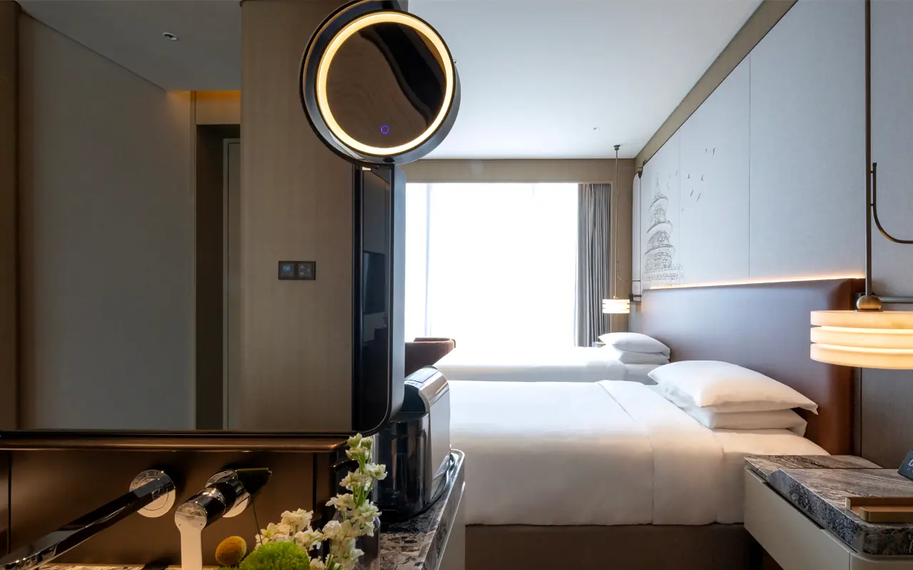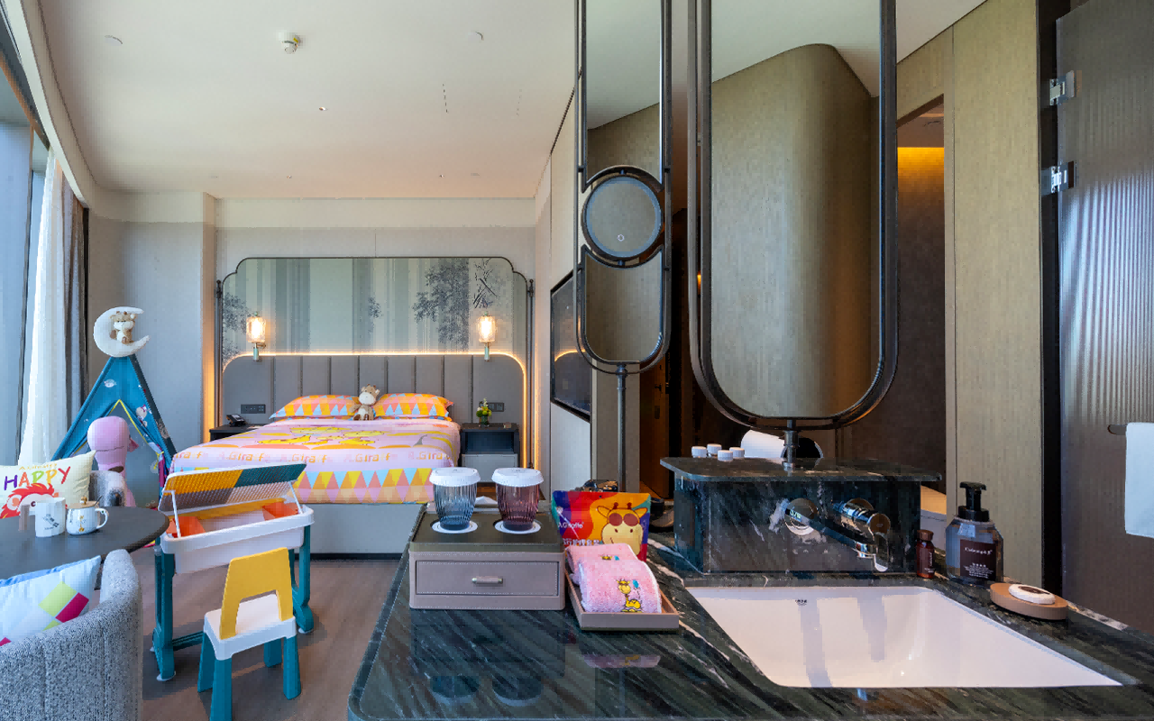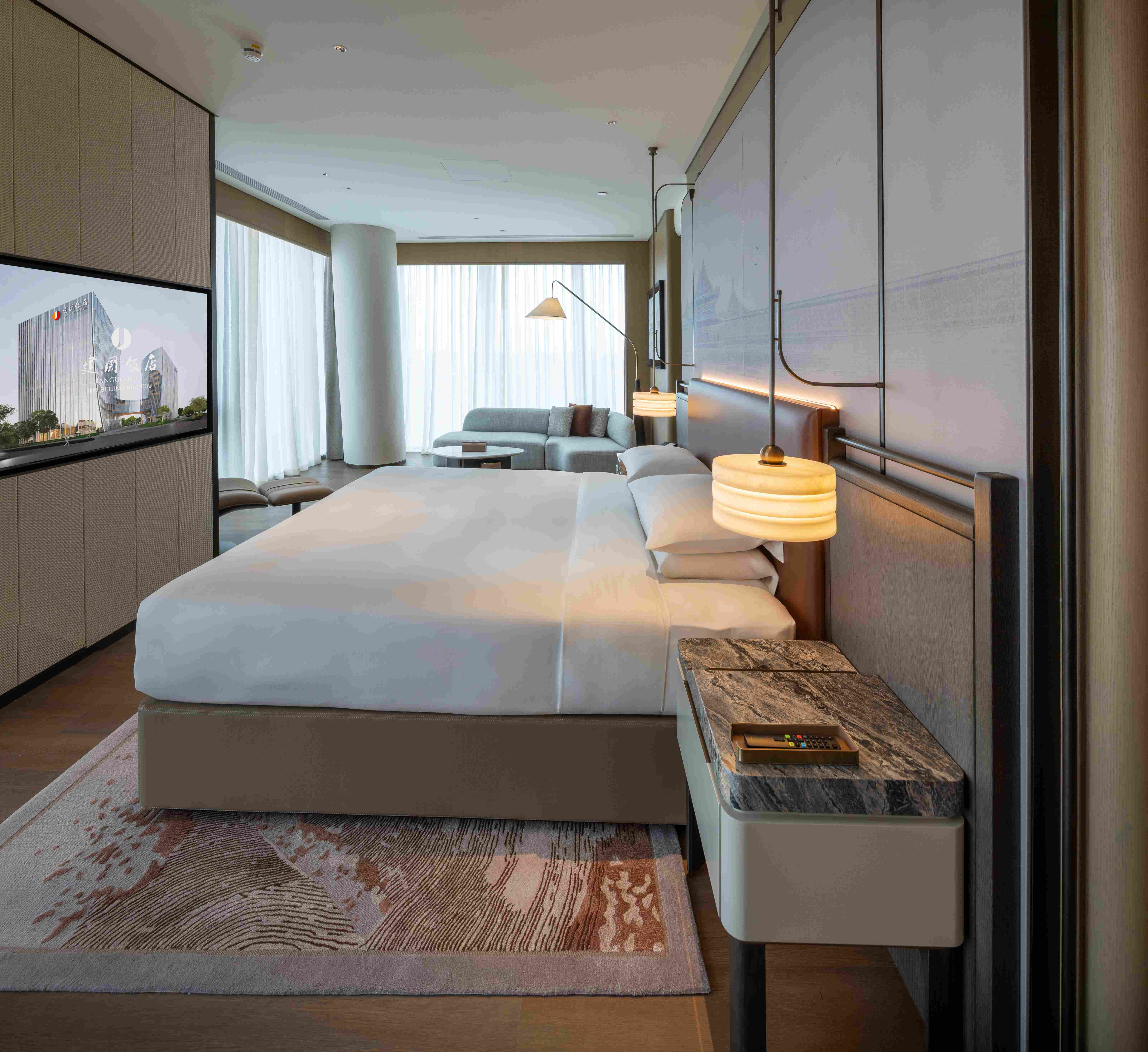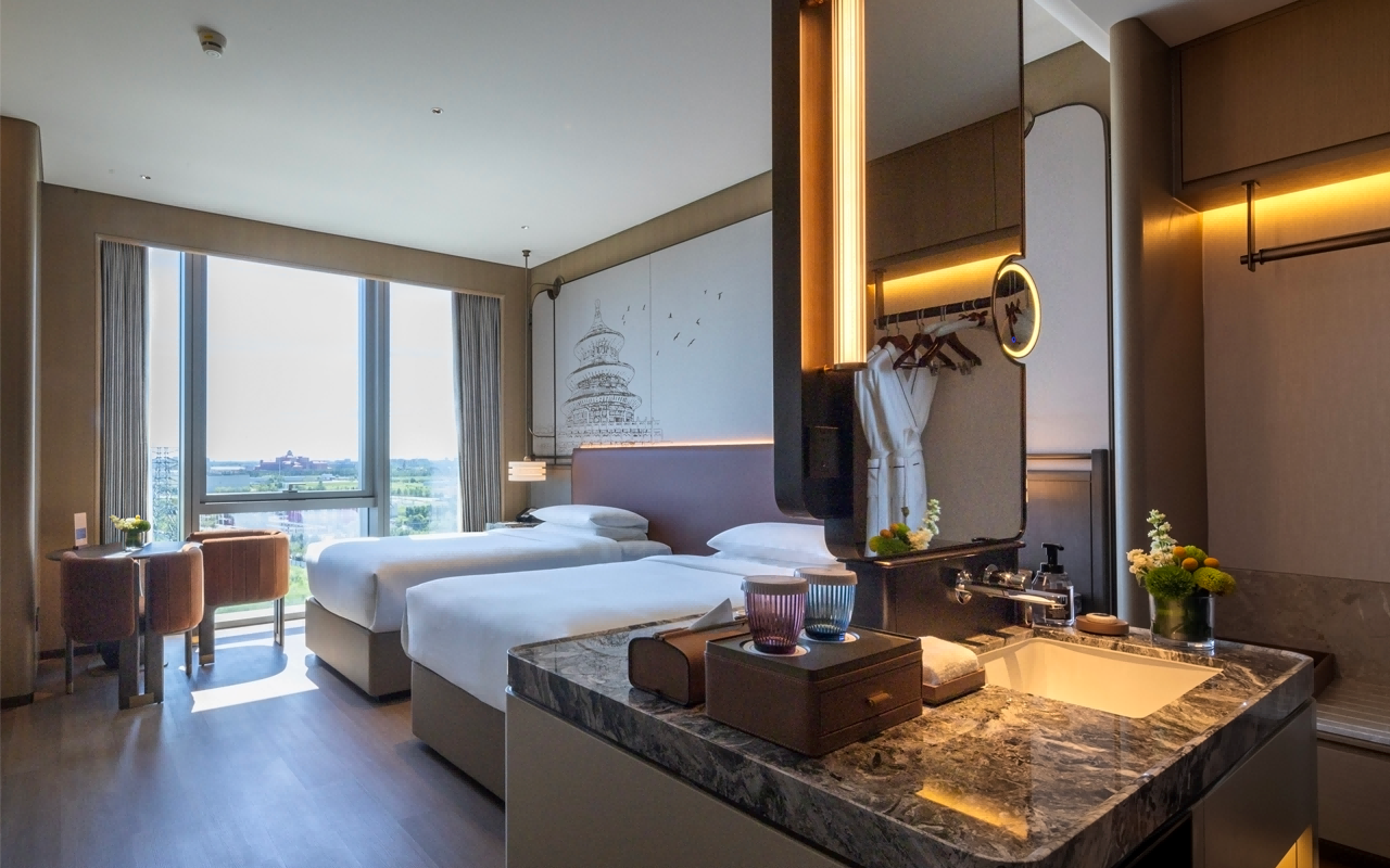 通州遇“建”,好“运”无限 Build Your Luck, Ride the Future in Tongzhou! 北京城市副中心文化旅游区的繁华版图上,建国饭店·环球店静立其间,与北京环球影城的奇幻世界为邻,它深植建国品牌的深厚底蕴,以大运河千年文脉为灵感源泉,用细腻优雅的中式待客之道,编织出一幅精妙绝伦的东方美学画卷。将简约的线条、时尚的格调、轻奢的质感、高效的体验与前沿的科技感完美融合,立志重塑城市美好生活新范式,打造一座生生不息的酒店文化综合体。 这座匠心之作,在2025GBE酒店设计大奖中脱颖而出,一举斩获“最佳城市地标酒店奖”。建筑设计巧妙融合现代与传统元素,于都市喧嚣中辟出一方文化、舒适与优雅兼具的“都市绿洲”,更为通州增添了一座熠熠生辉的标志性建筑。