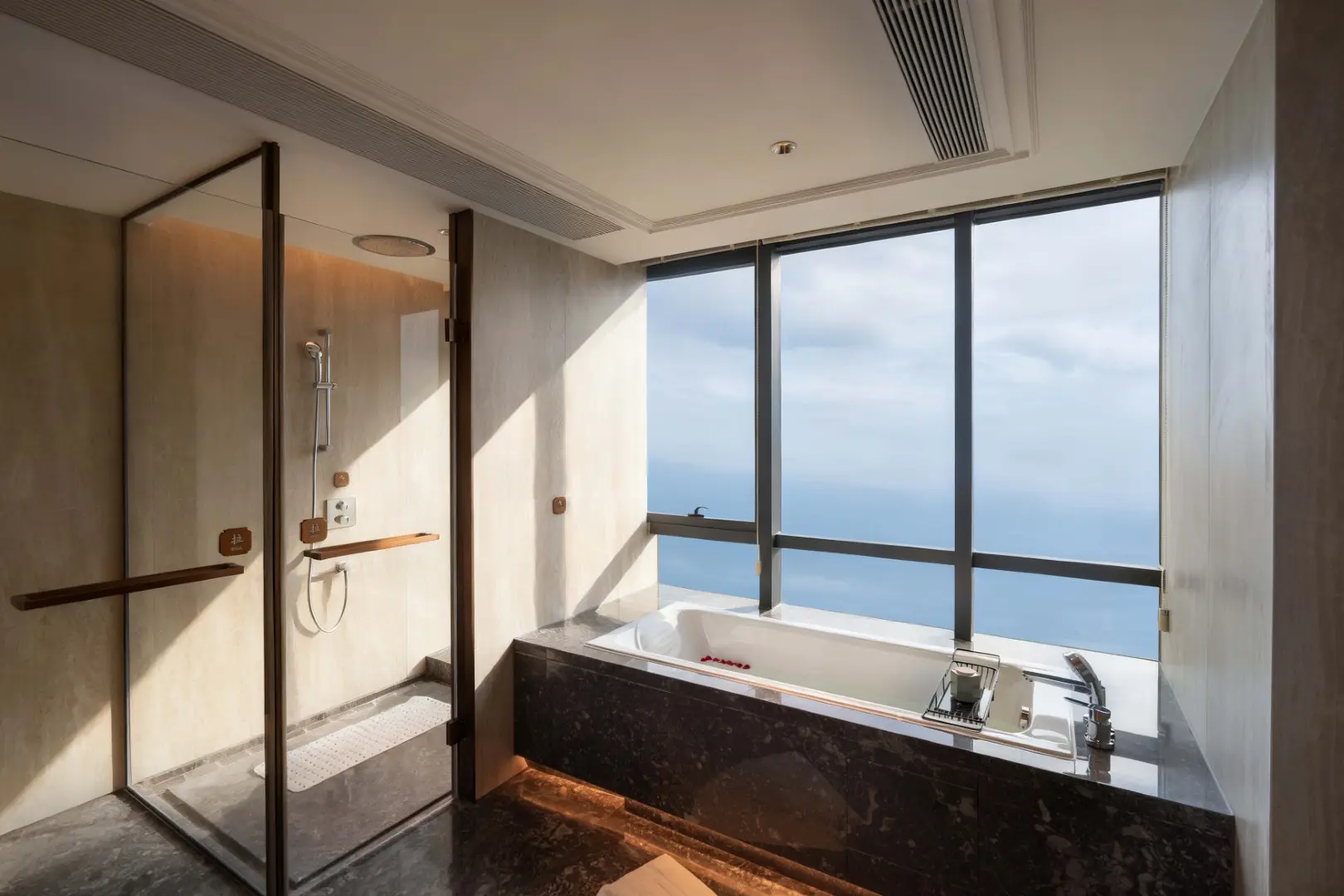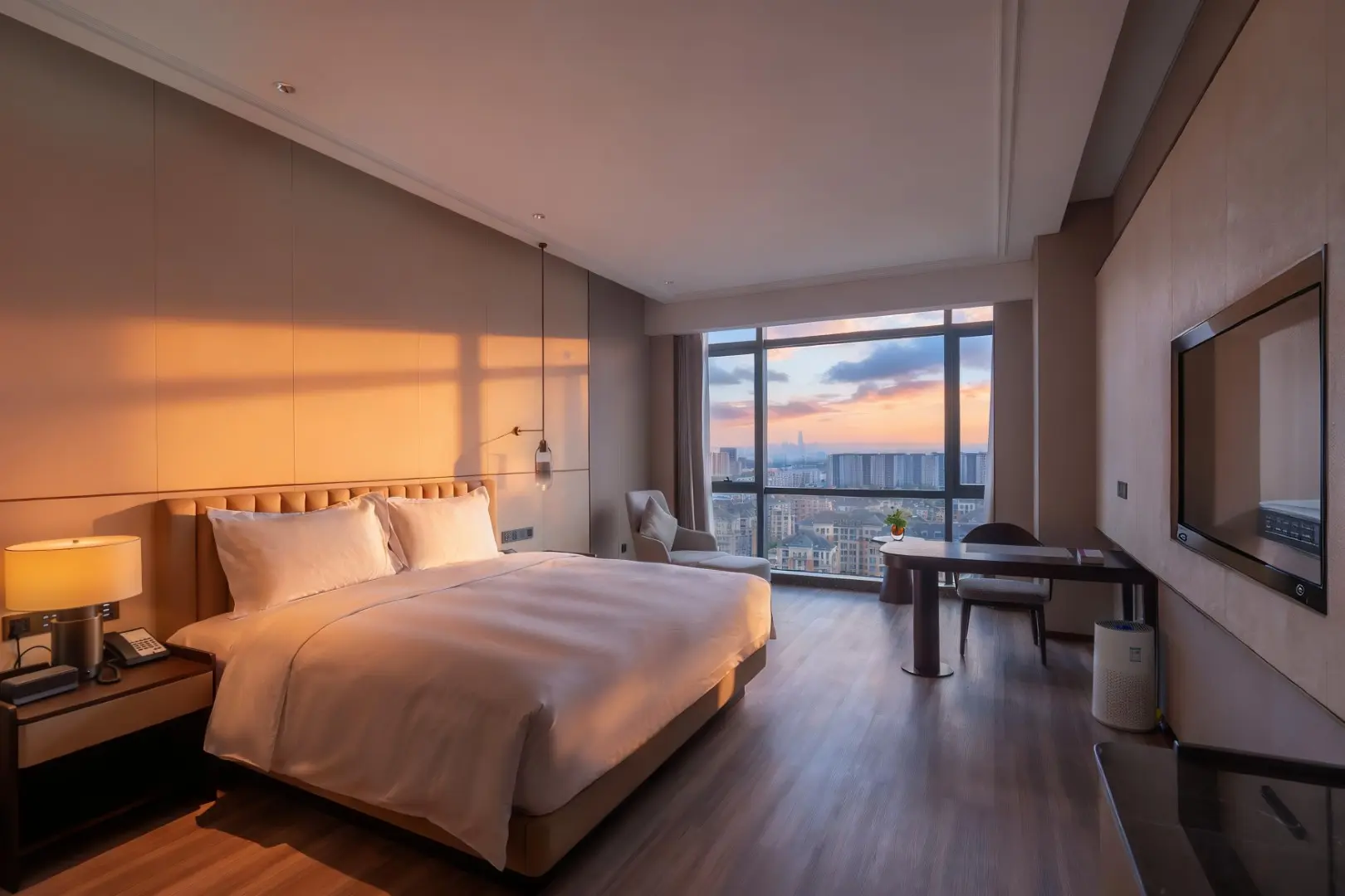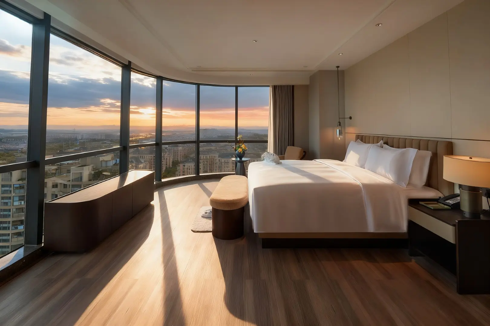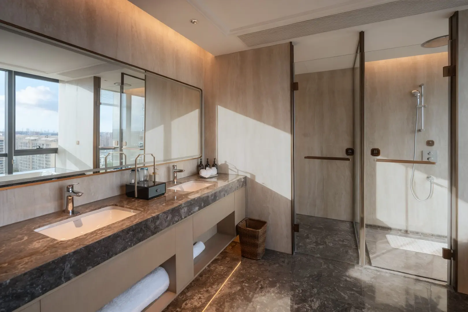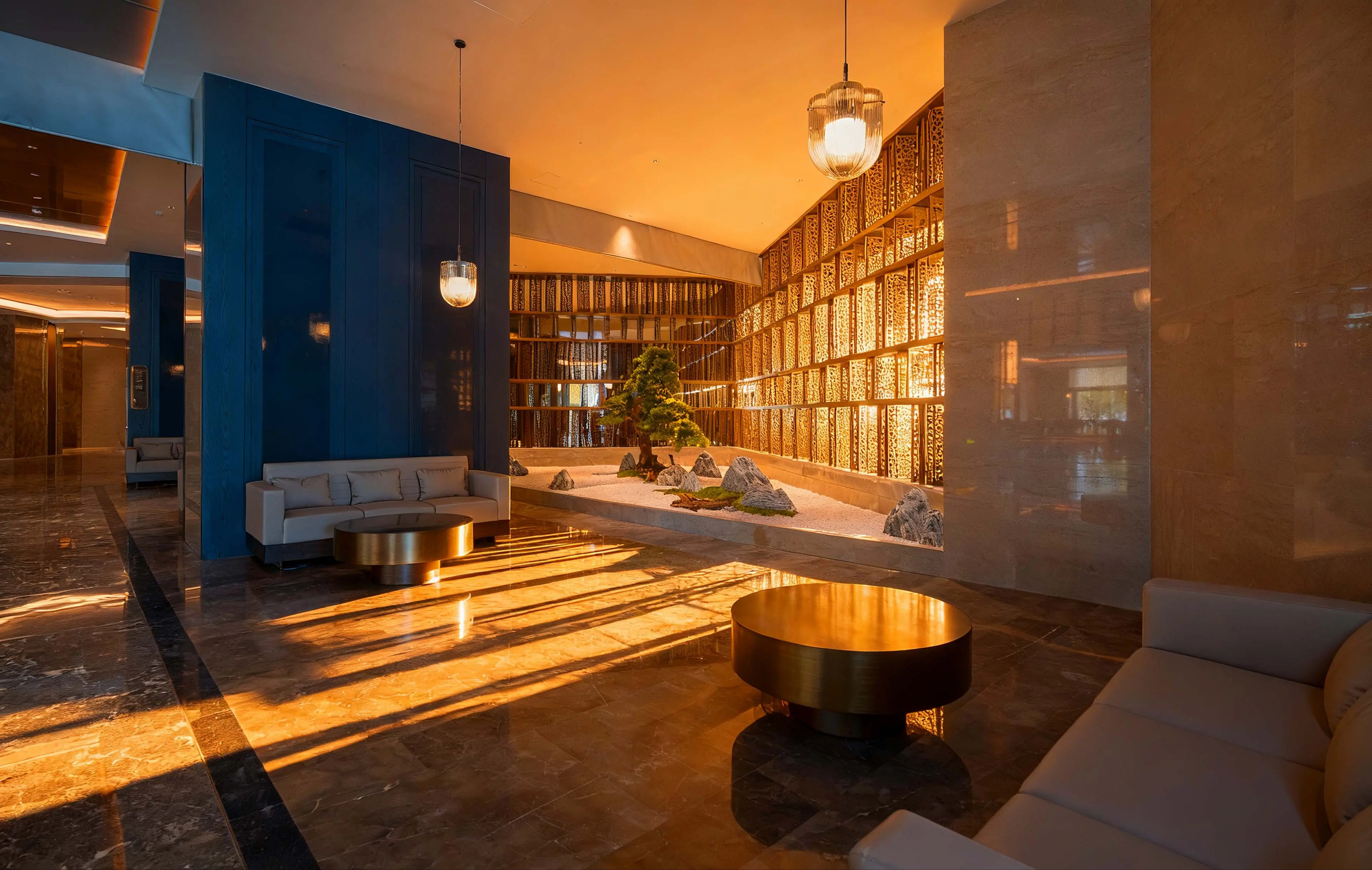 酒店总建筑面积7万平方2,坐拥338间不同风格的温馨舒适的客房,酒店行政套房配有私人管家服务,提供“商帮文化导览”定制服务。客房设计融合了现代美学与在地文化元素,彰显现代奢华旅居体验。 刻印“镇海IN迹,传承“书香文化”,融合新中式的设计风格,高端商务与城市微度假相融合,打造极具IP主题文化特色的高端商务休闲酒店,成为镇海最美的城市会客厅。