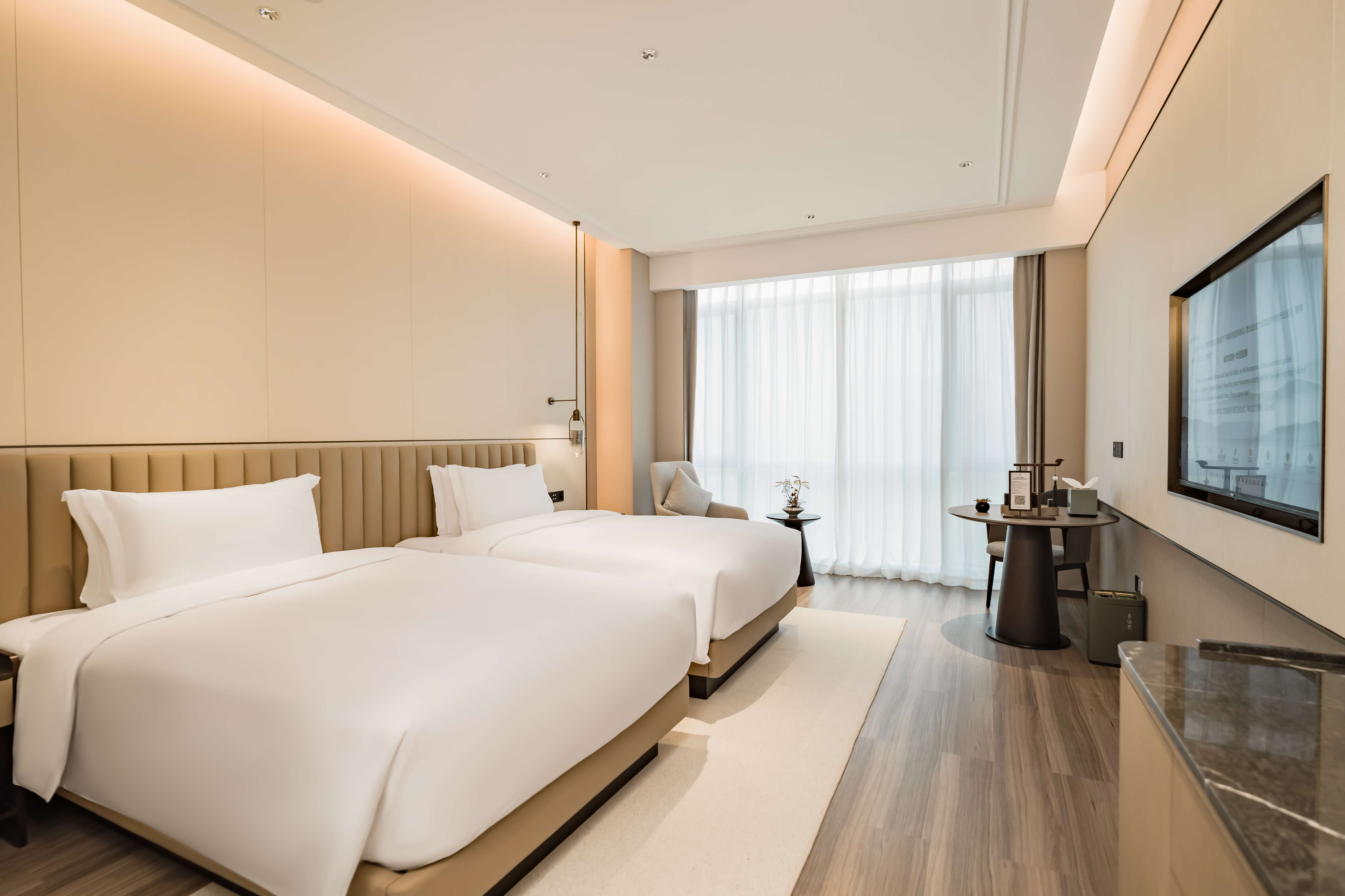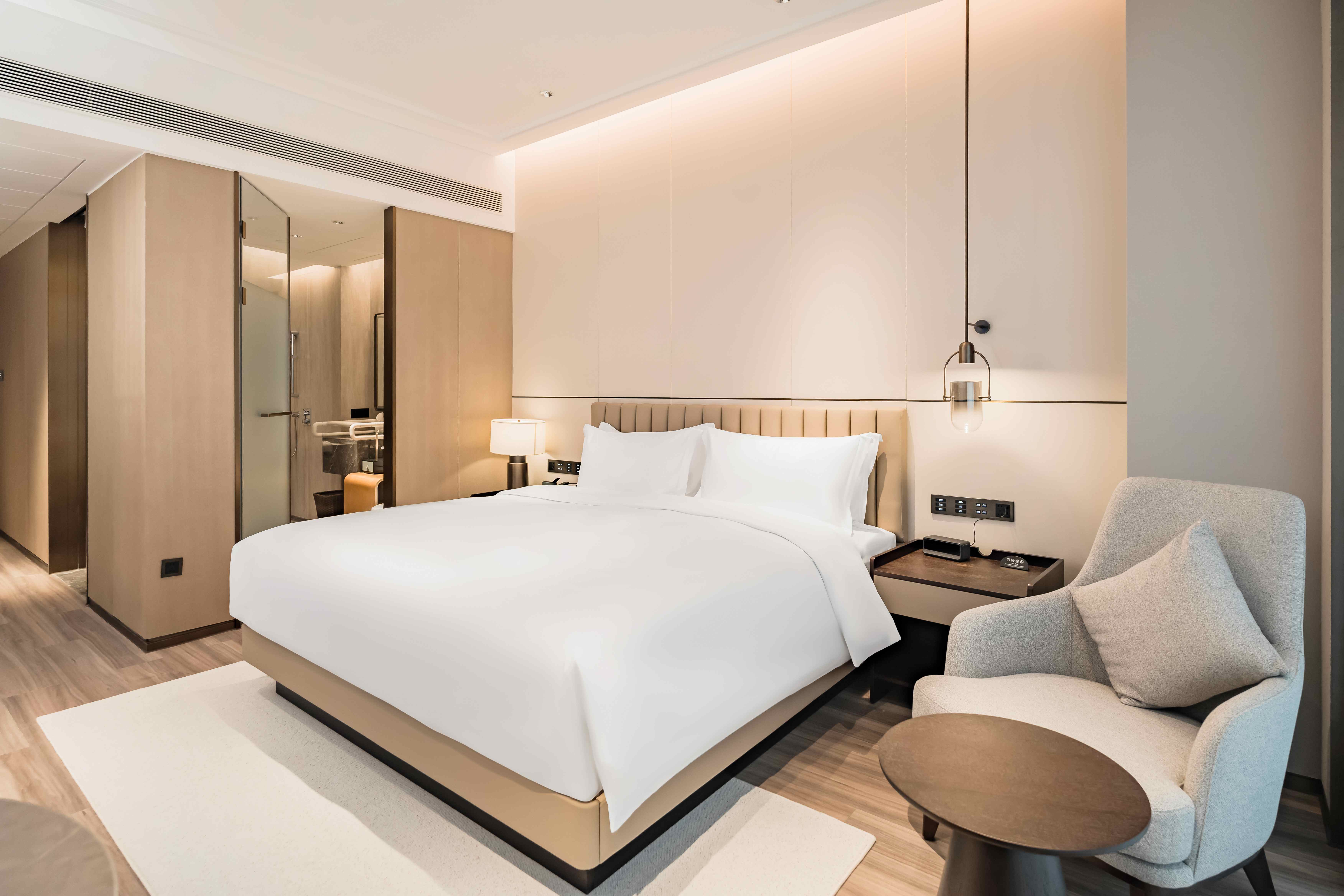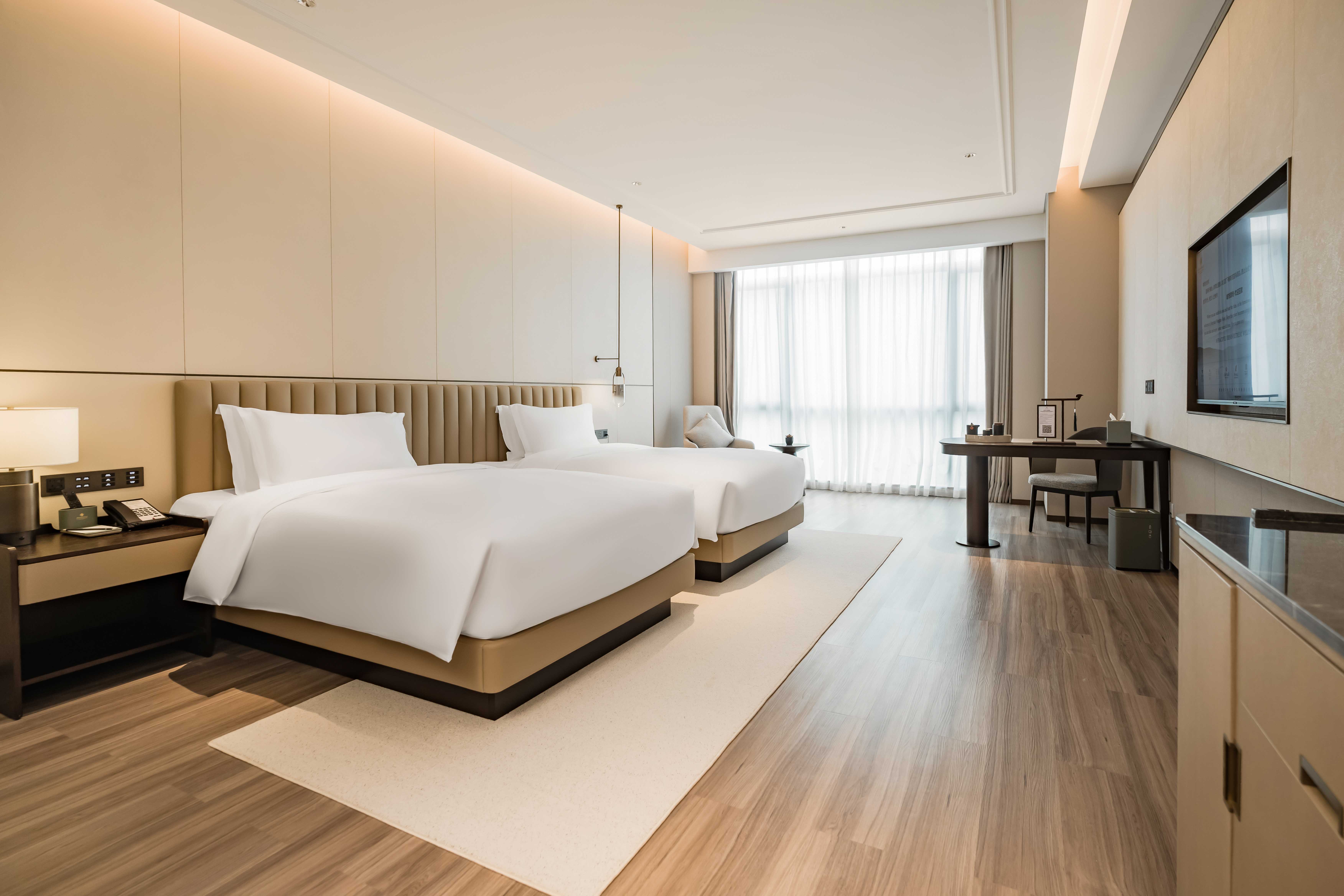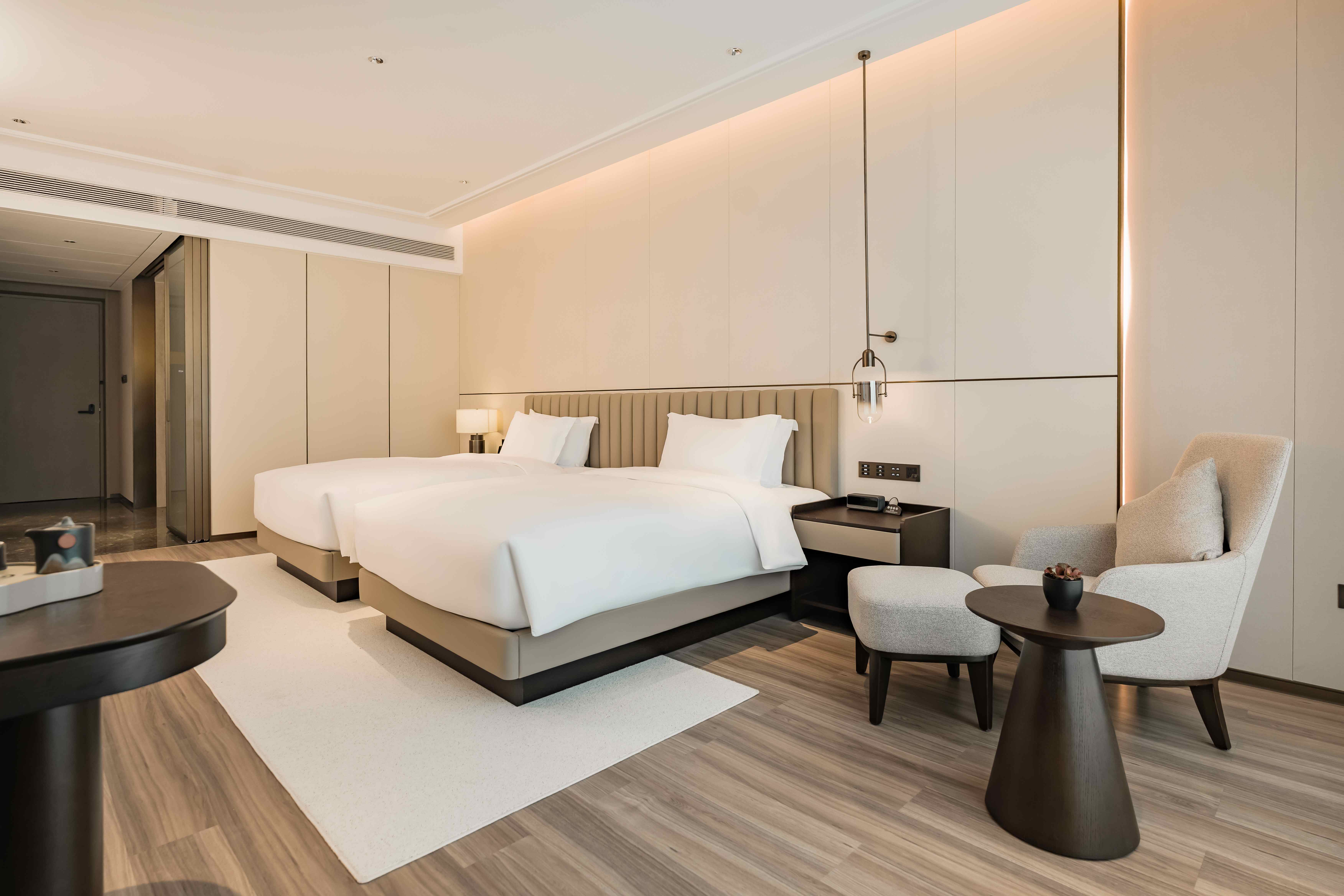 酒店总建筑面积7万平方2,坐拥338间不同风格的温馨舒适的客房,酒店行政套房配有私人管家服务,提供“商帮文化导览”定制服务。客房设计融合了现代美学与在地文化元素,彰显现代奢华旅居体验。 刻印“镇海IN迹,传承“书香文化”,融合新中式的设计风格,高端商务与城市微度假相融合,打造极具IP主题文化特色的高端商务休闲酒店,成为镇海最美的城市会客厅。