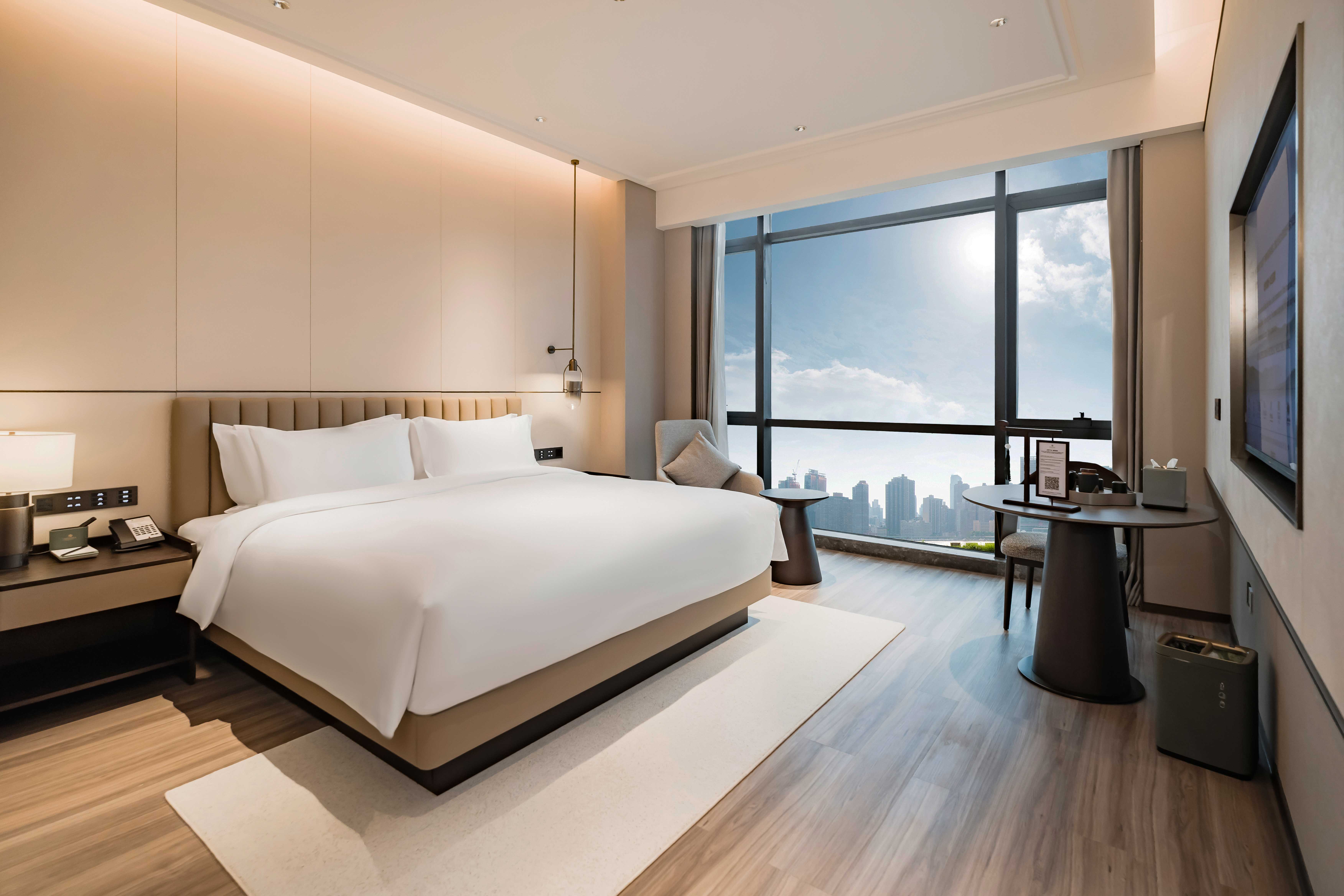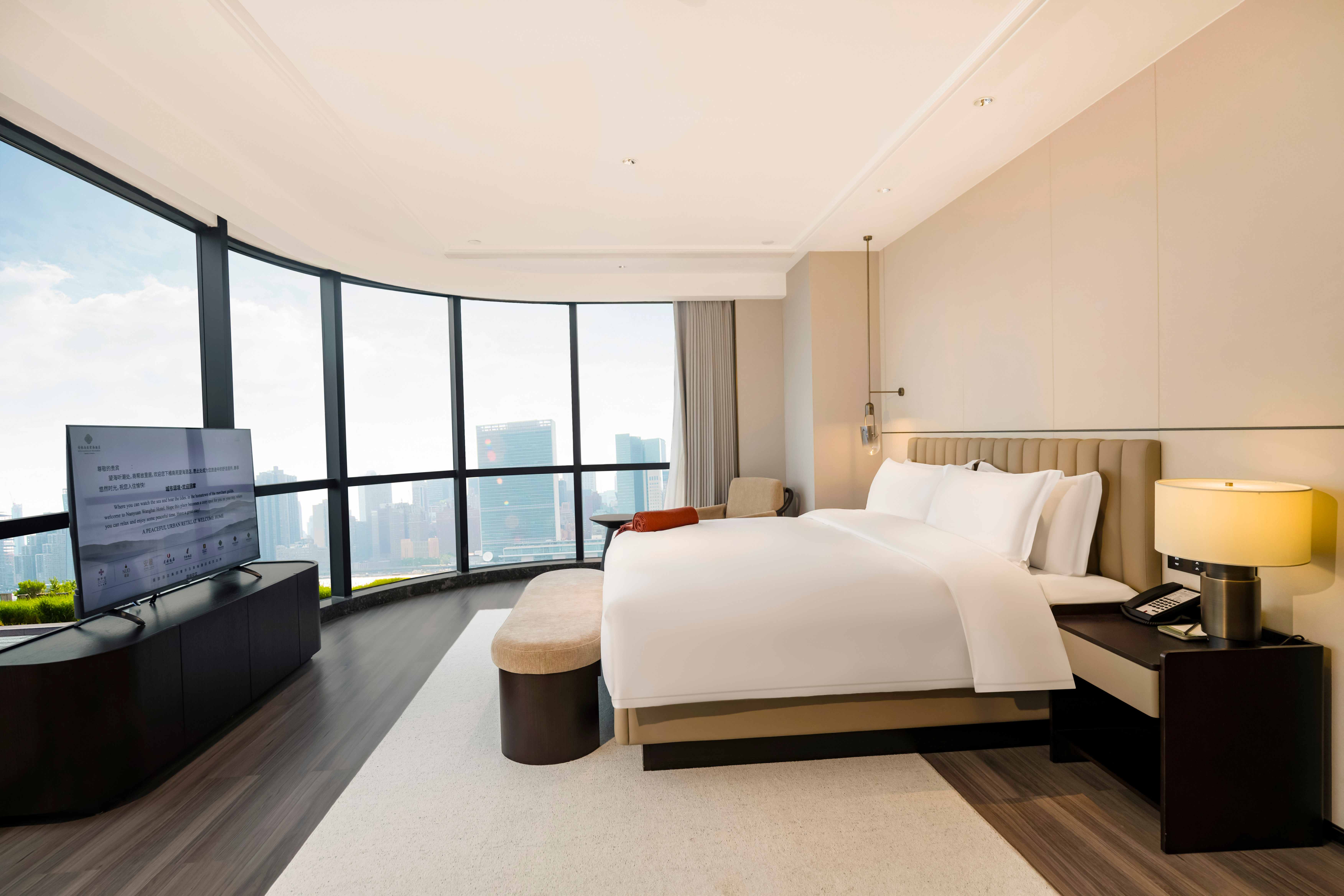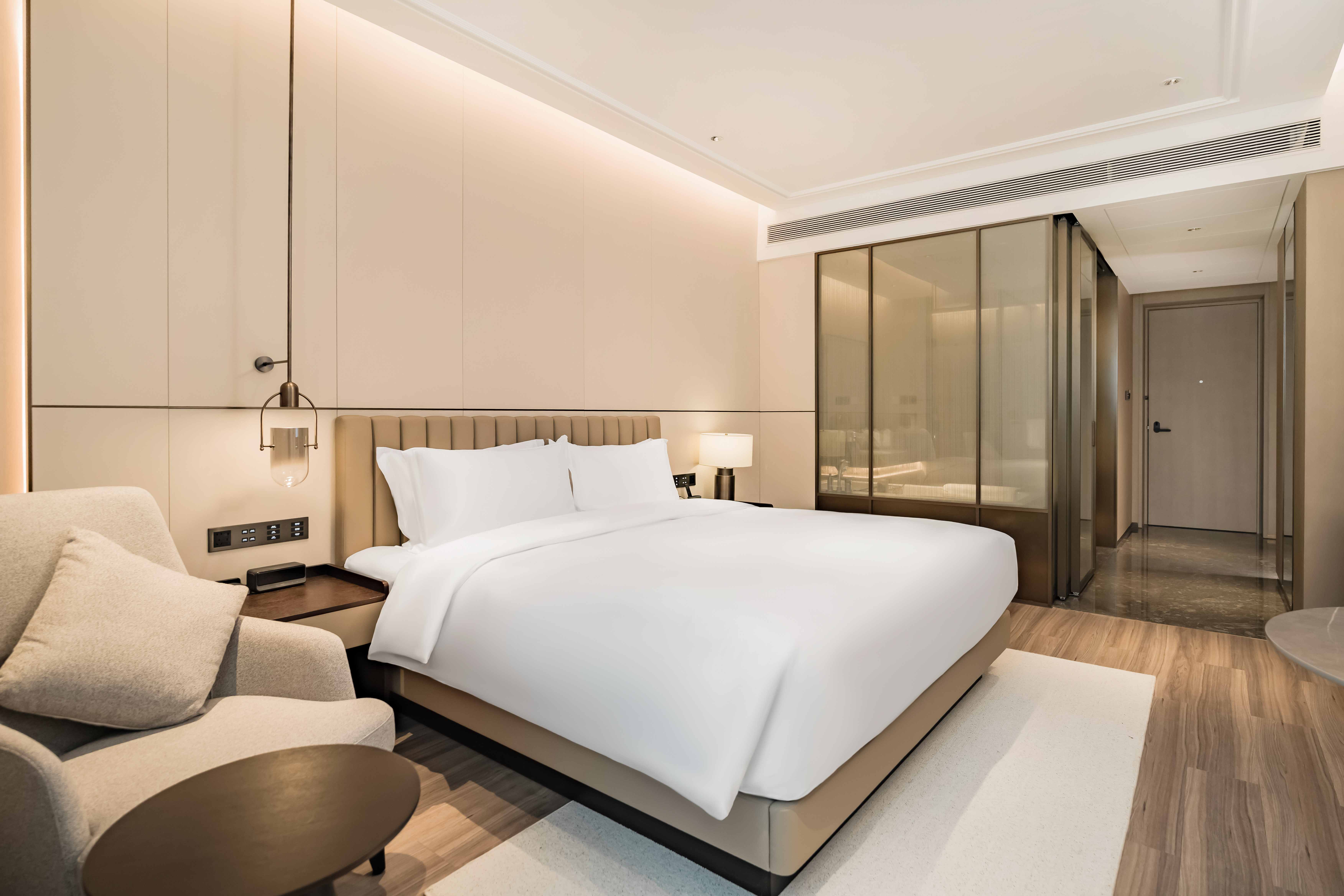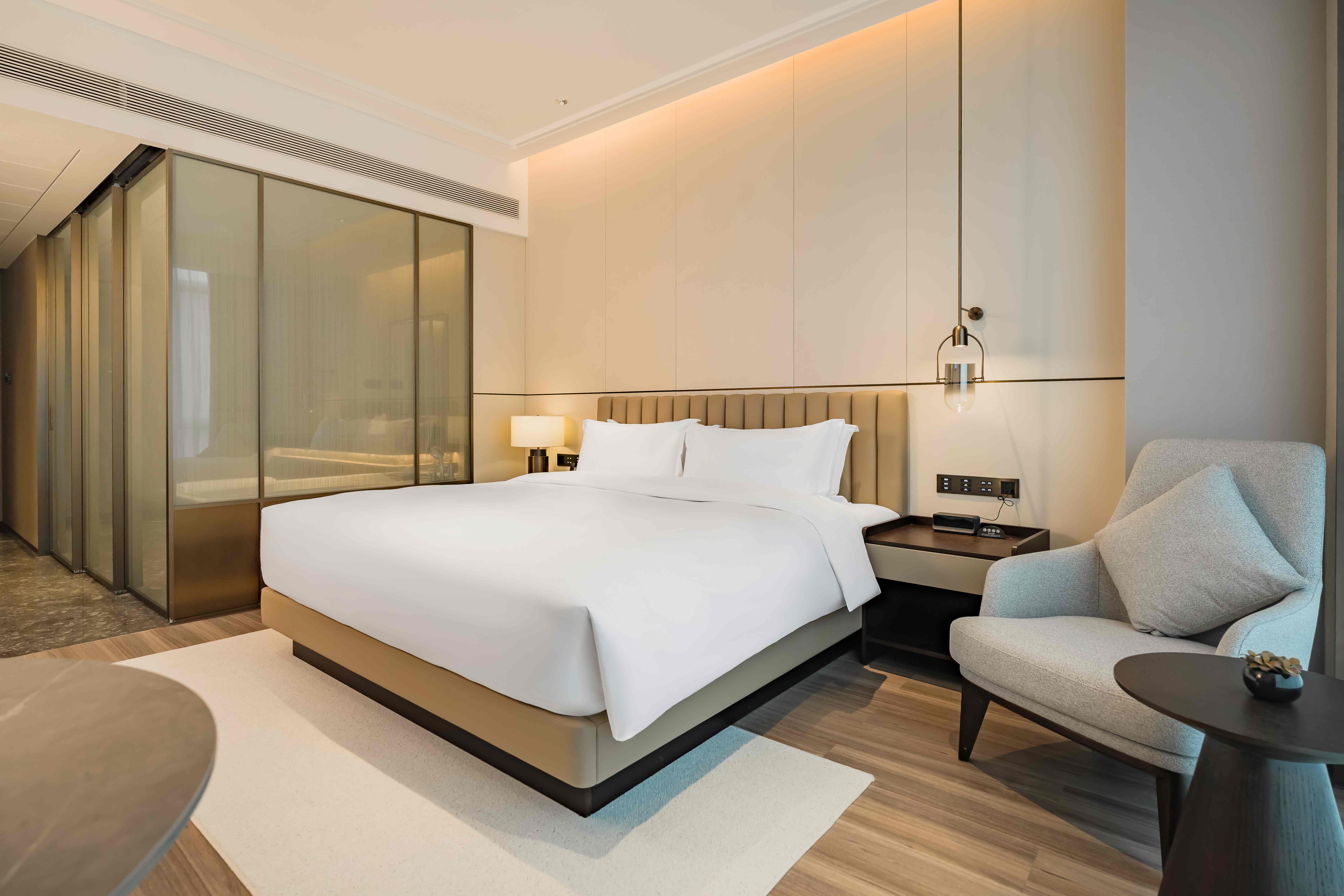 酒店总建筑面积7万平方2,坐拥338间不同风格的温馨舒适的客房,酒店行政套房配有私人管家服务,提供“商帮文化导览”定制服务。客房设计融合了现代美学与在地文化元素,彰显现代奢华旅居体验。 刻印“镇海IN迹,传承“书香文化”,融合新中式的设计风格,高端商务与城市微度假相融合,打造极具IP主题文化特色的高端商务休闲酒店,成为镇海最美的城市会客厅。
