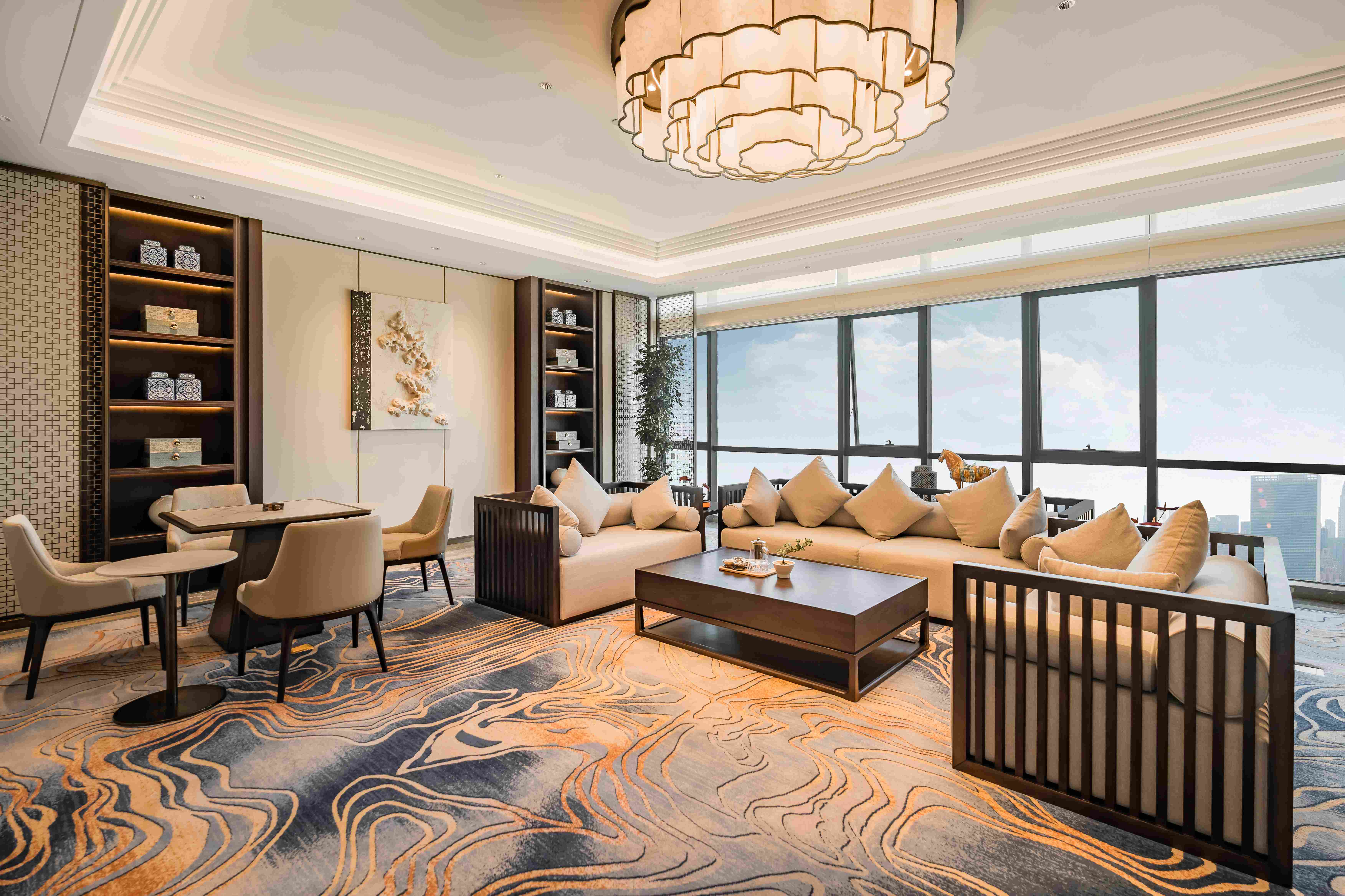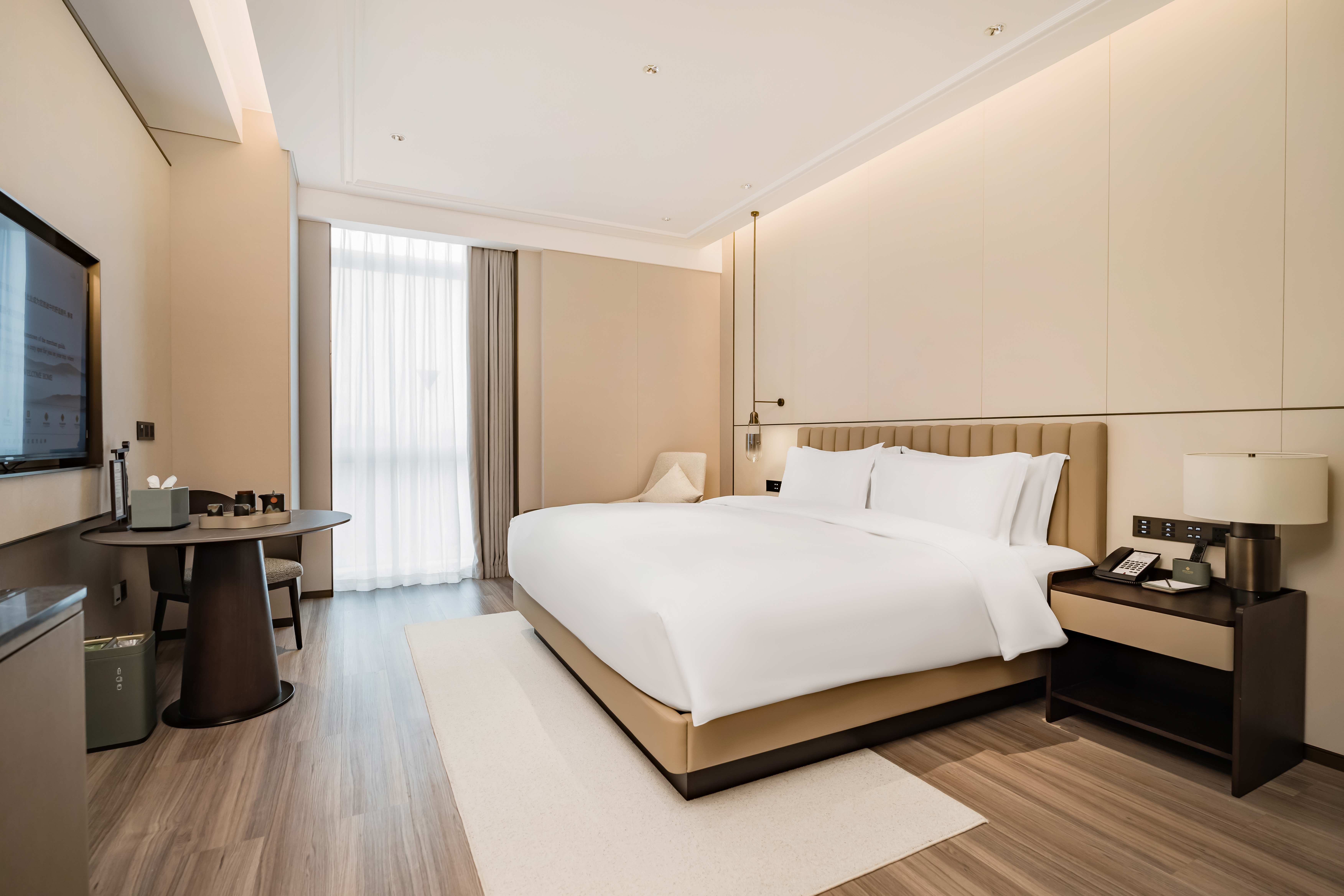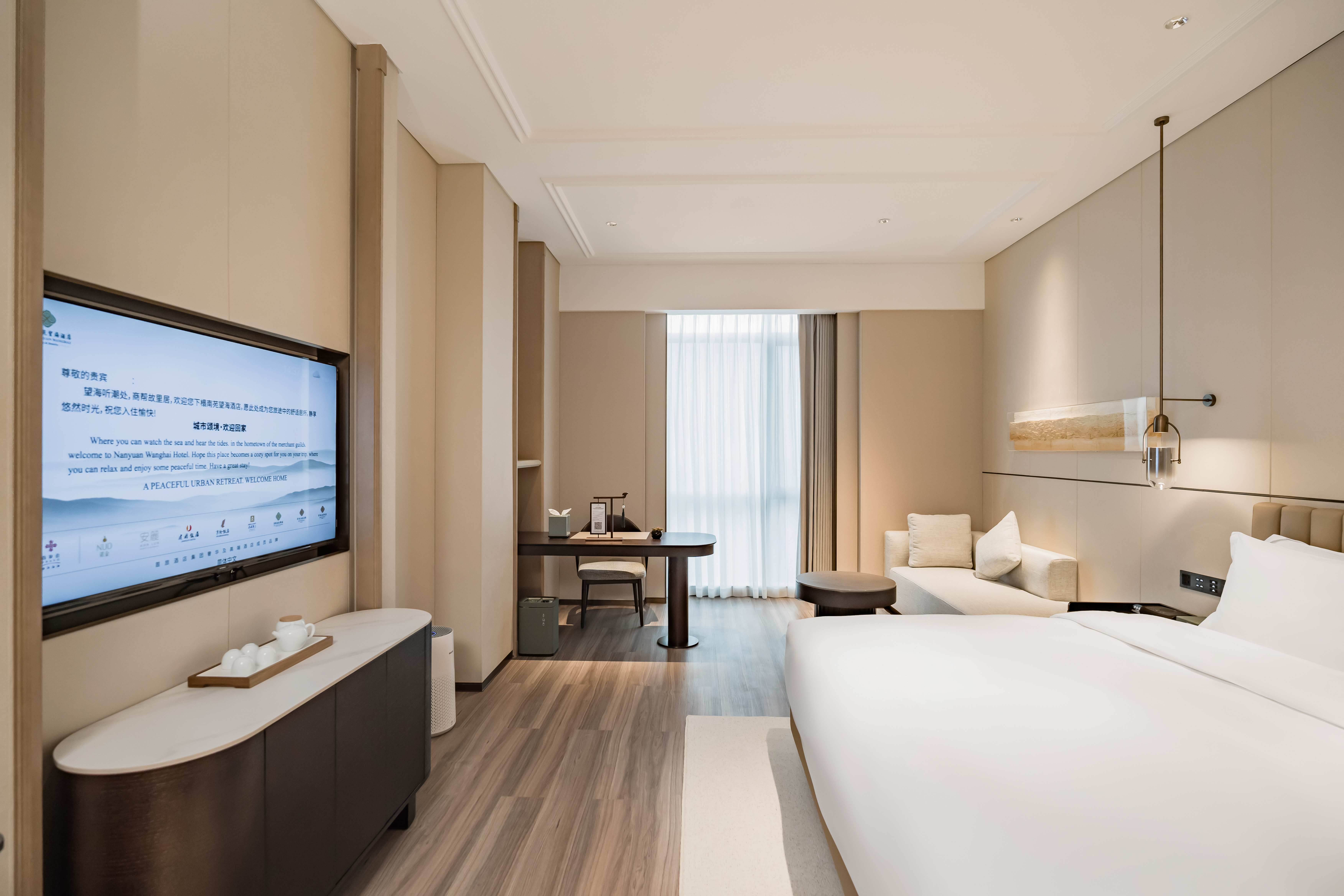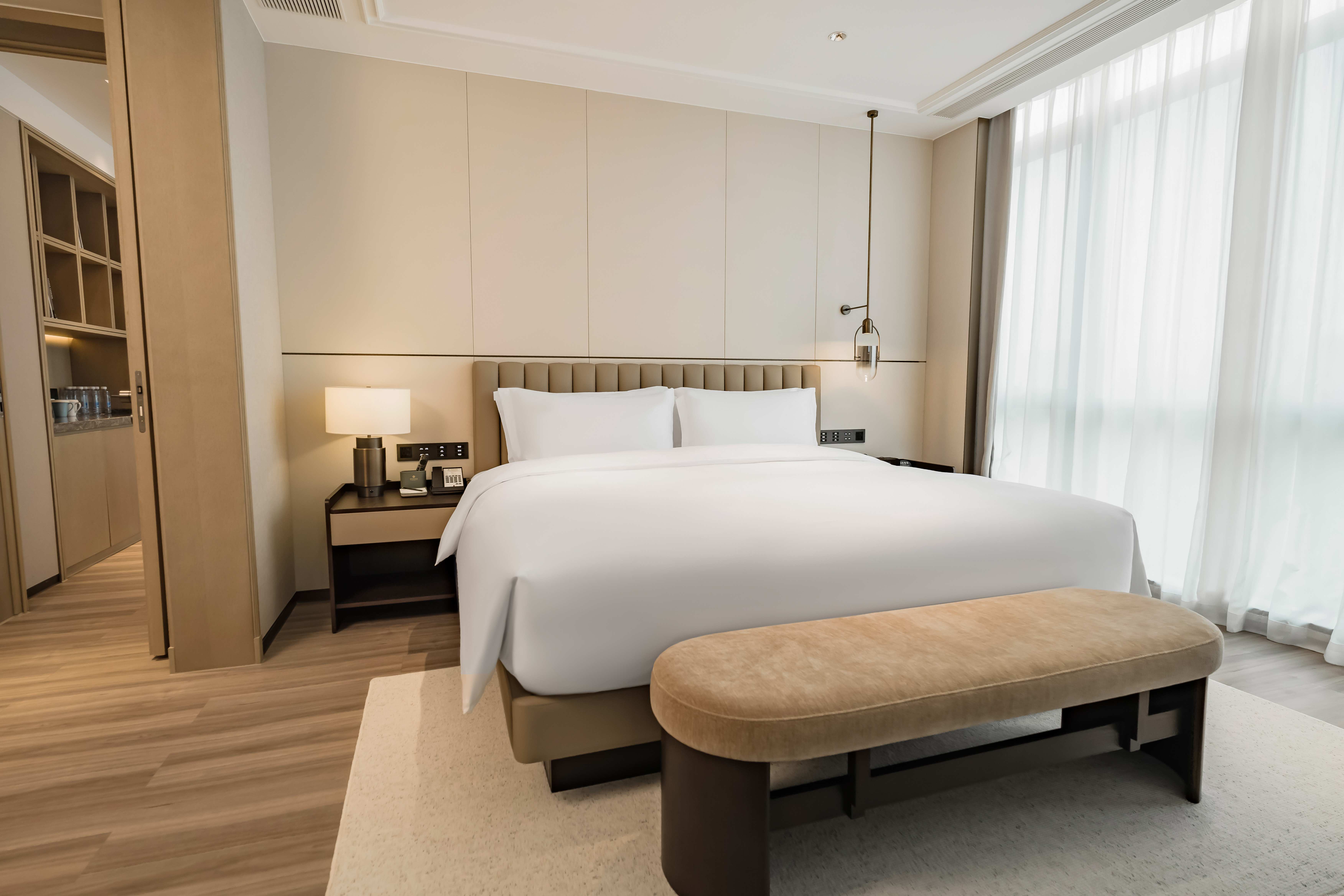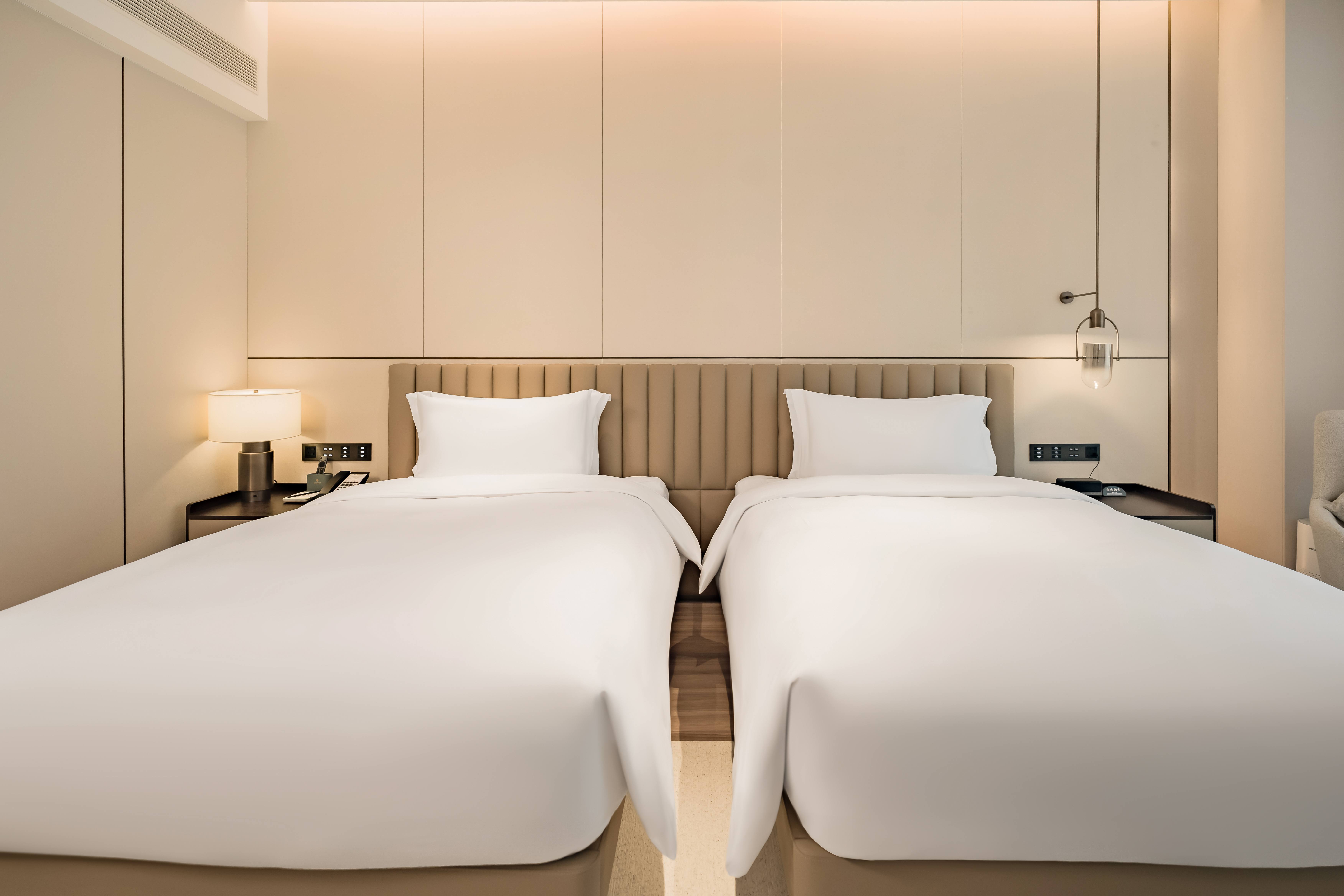 酒店总建筑面积7万平方2,坐拥338间不同风格的温馨舒适的客房,酒店行政套房配有私人管家服务,提供“商帮文化导览”定制服务。客房设计融合了现代美学与在地文化元素,彰显现代奢华旅居体验。 刻印“镇海IN迹,传承“书香文化”,融合新中式的设计风格,高端商务与城市微度假相融合,打造极具IP主题文化特色的高端商务休闲酒店,成为镇海最美的城市会客厅。