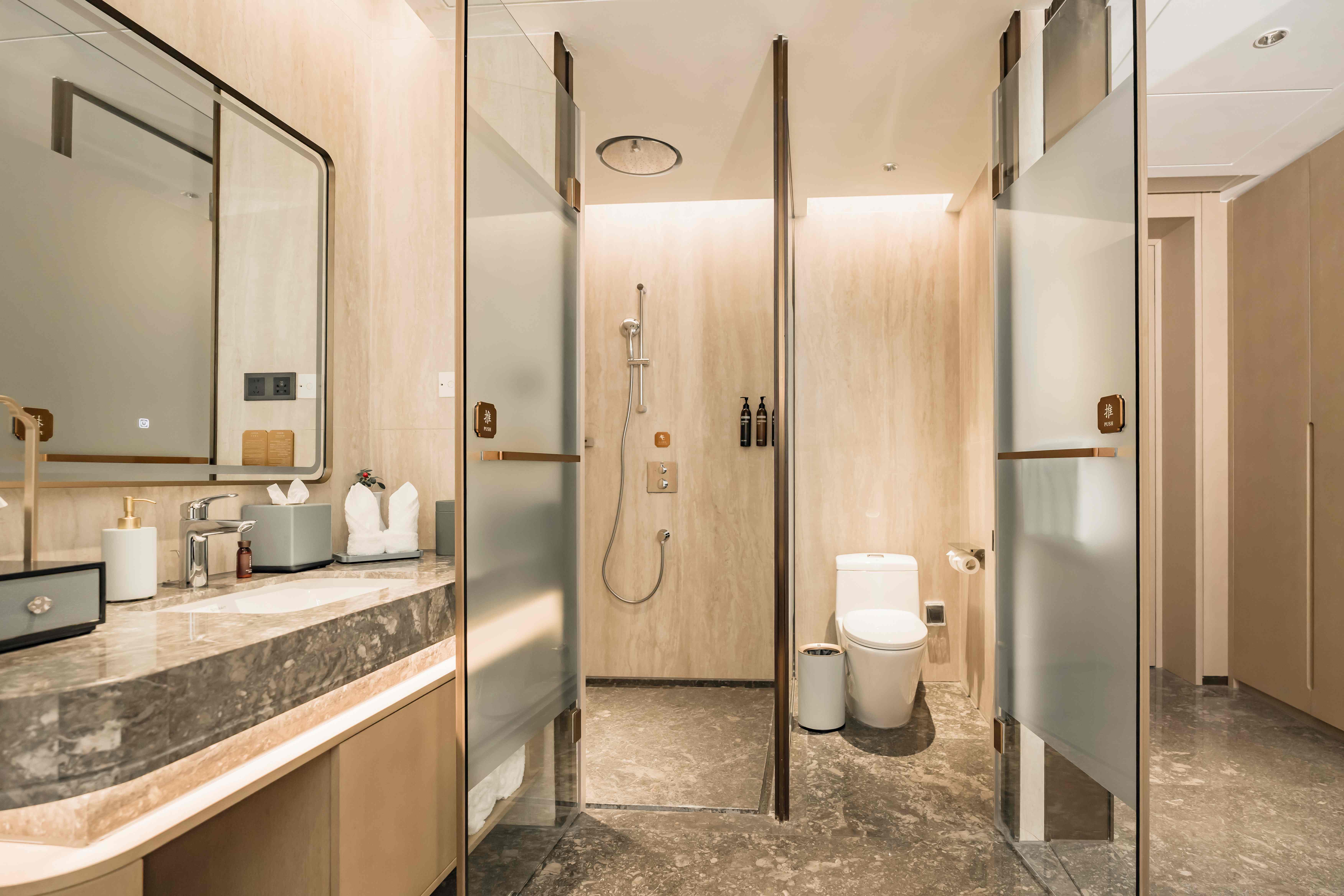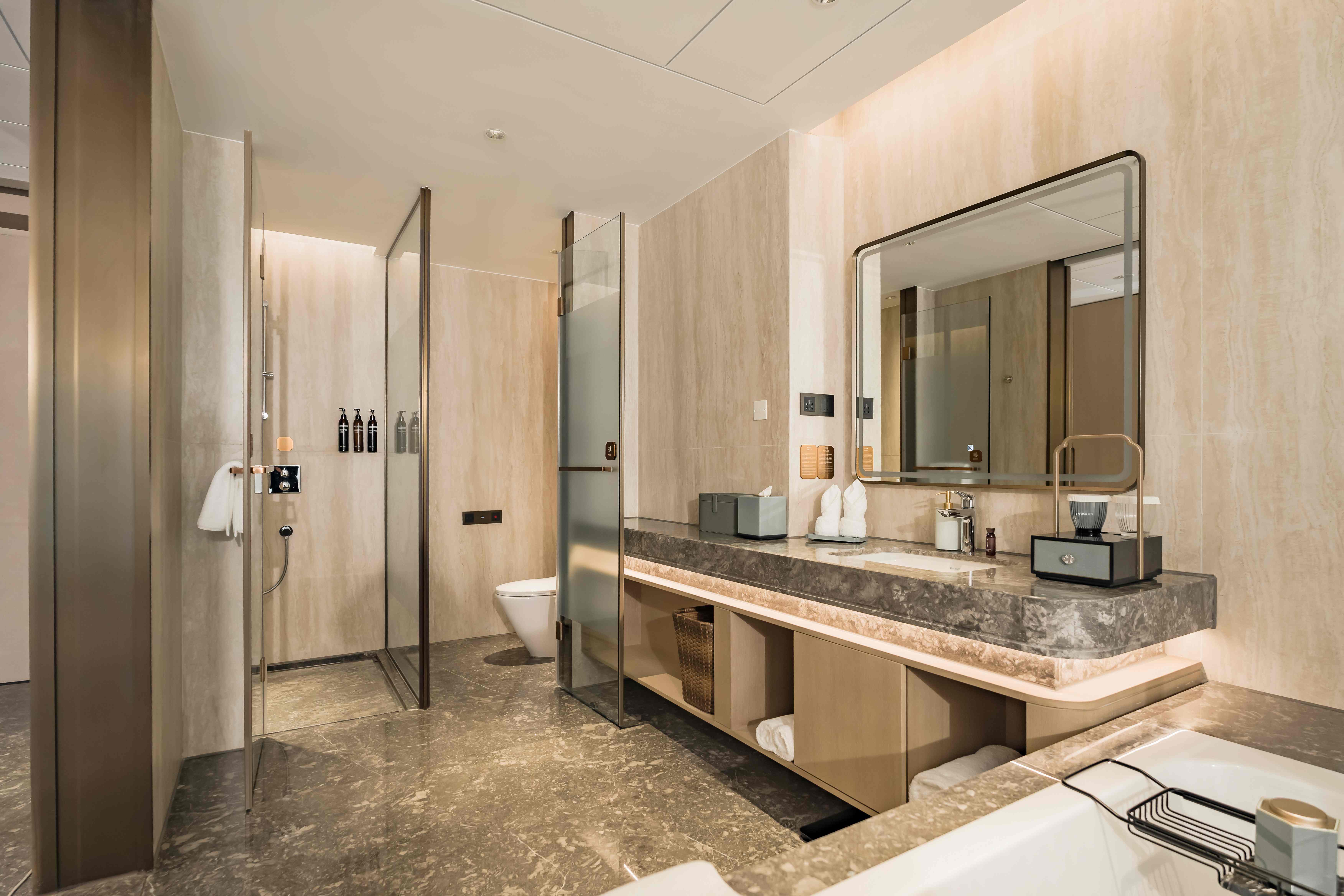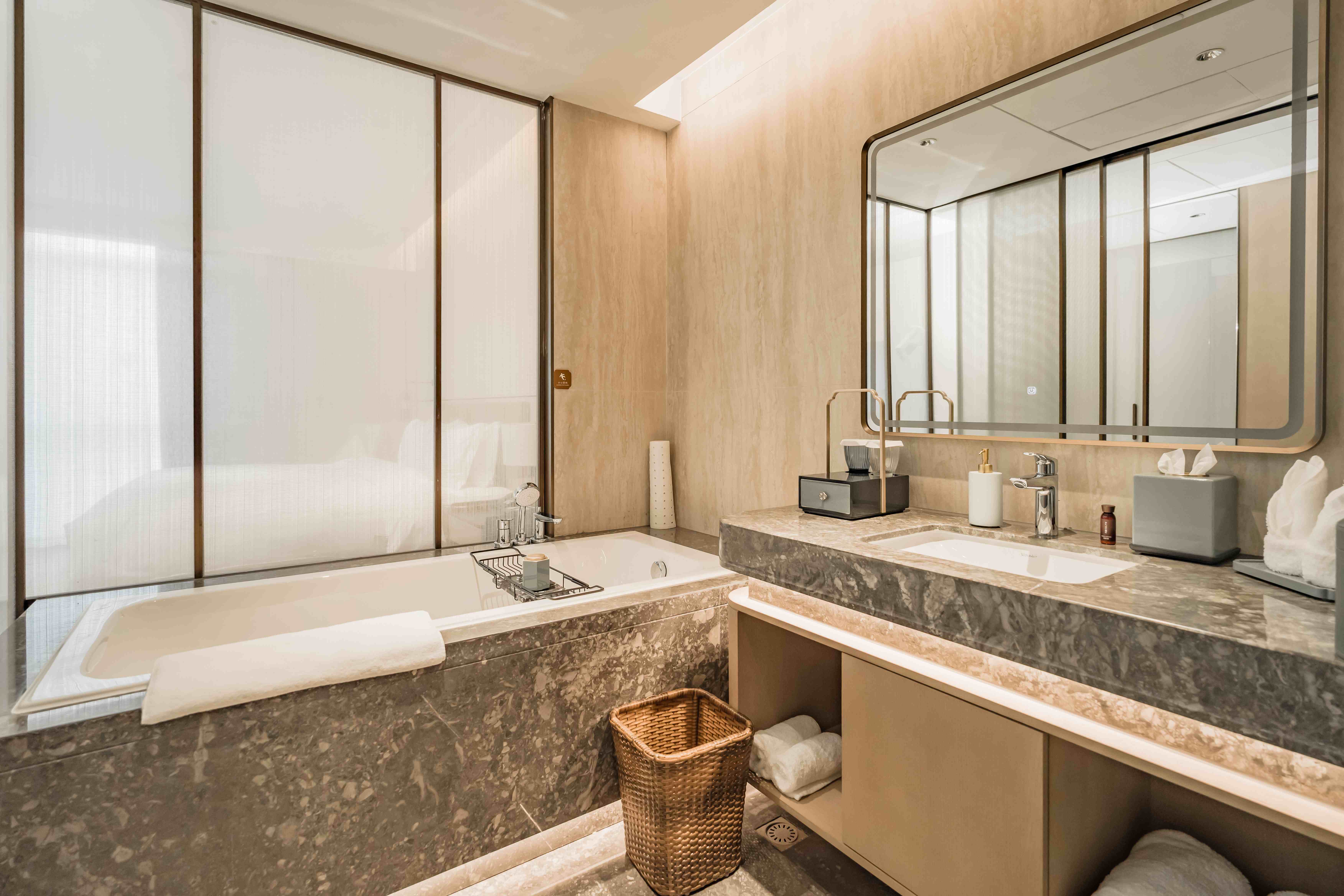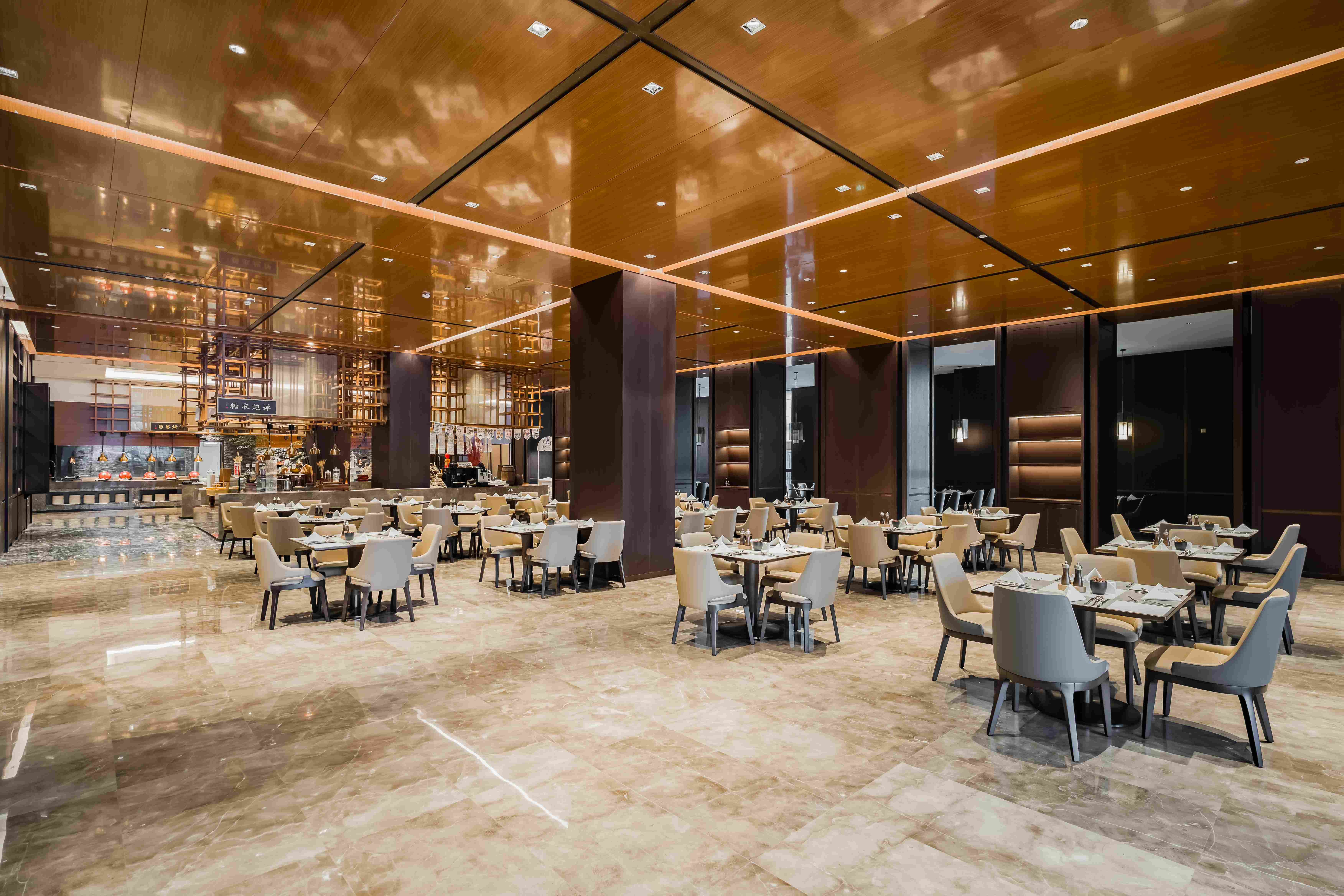 酒店总建筑面积7万平方2,坐拥338间不同风格的温馨舒适的客房,酒店行政套房配有私人管家服务,提供“商帮文化导览”定制服务。客房设计融合了现代美学与在地文化元素,彰显现代奢华旅居体验。 刻印“镇海IN迹,传承“书香文化”,融合新中式的设计风格,高端商务与城市微度假相融合,打造极具IP主题文化特色的高端商务休闲酒店,成为镇海最美的城市会客厅。