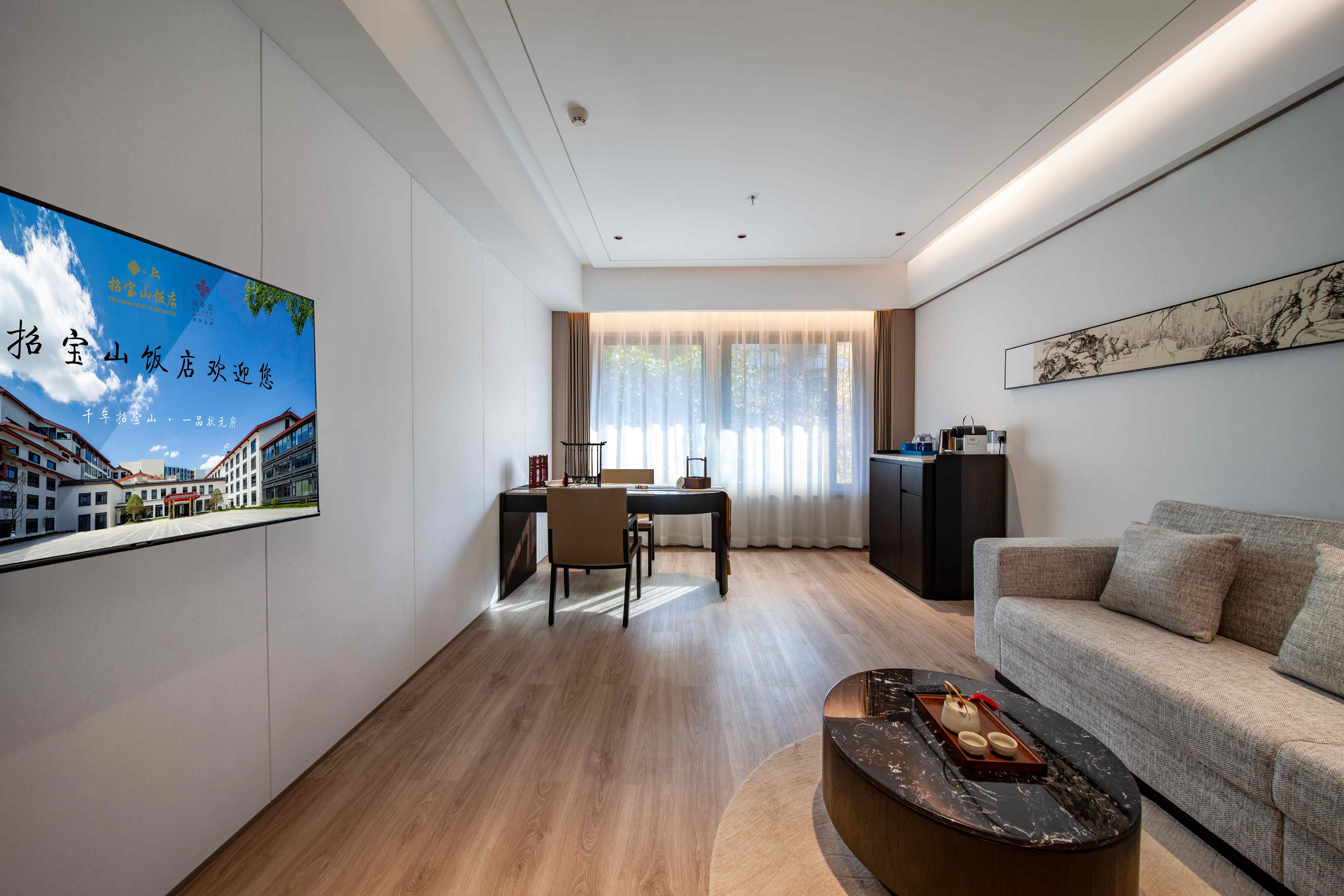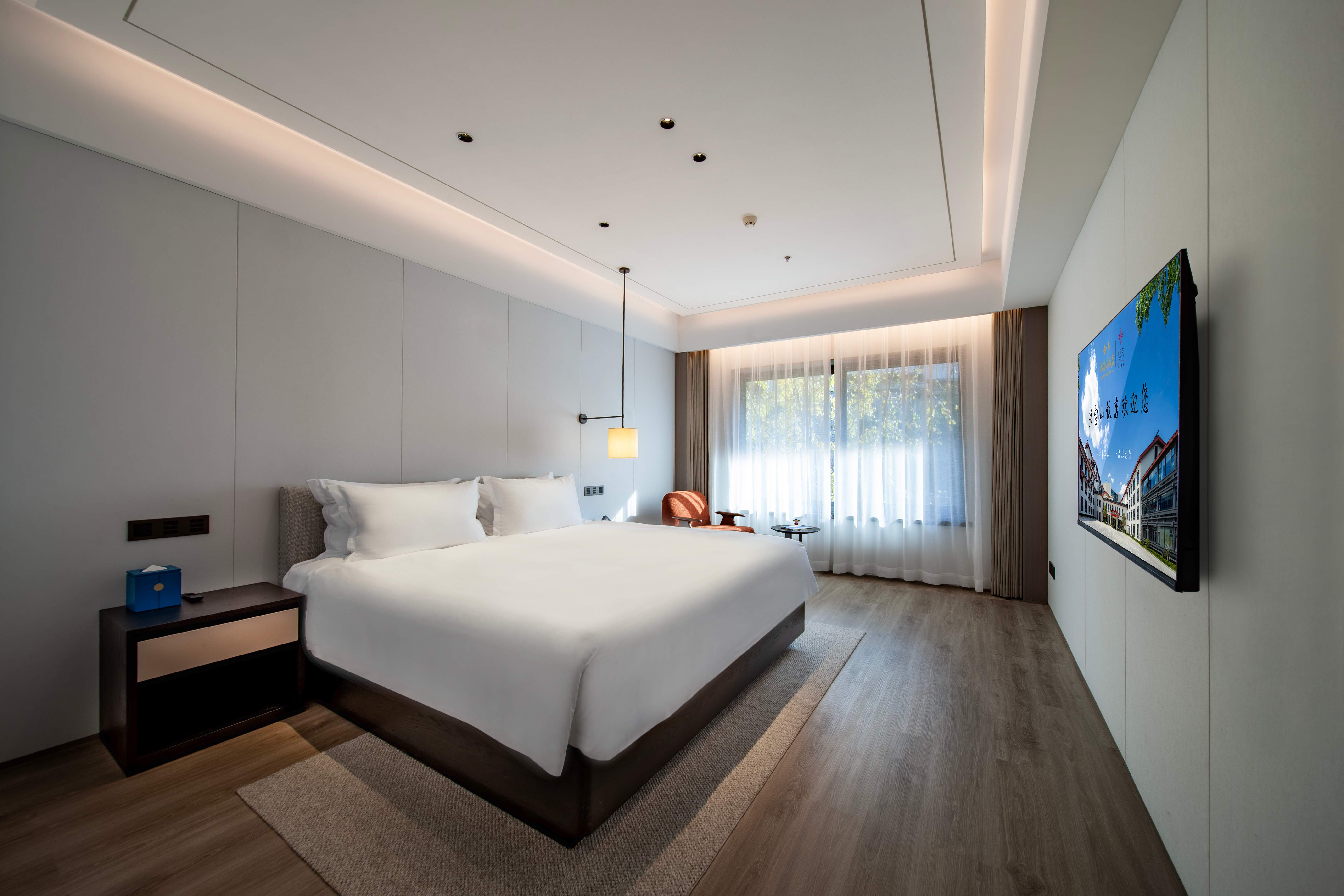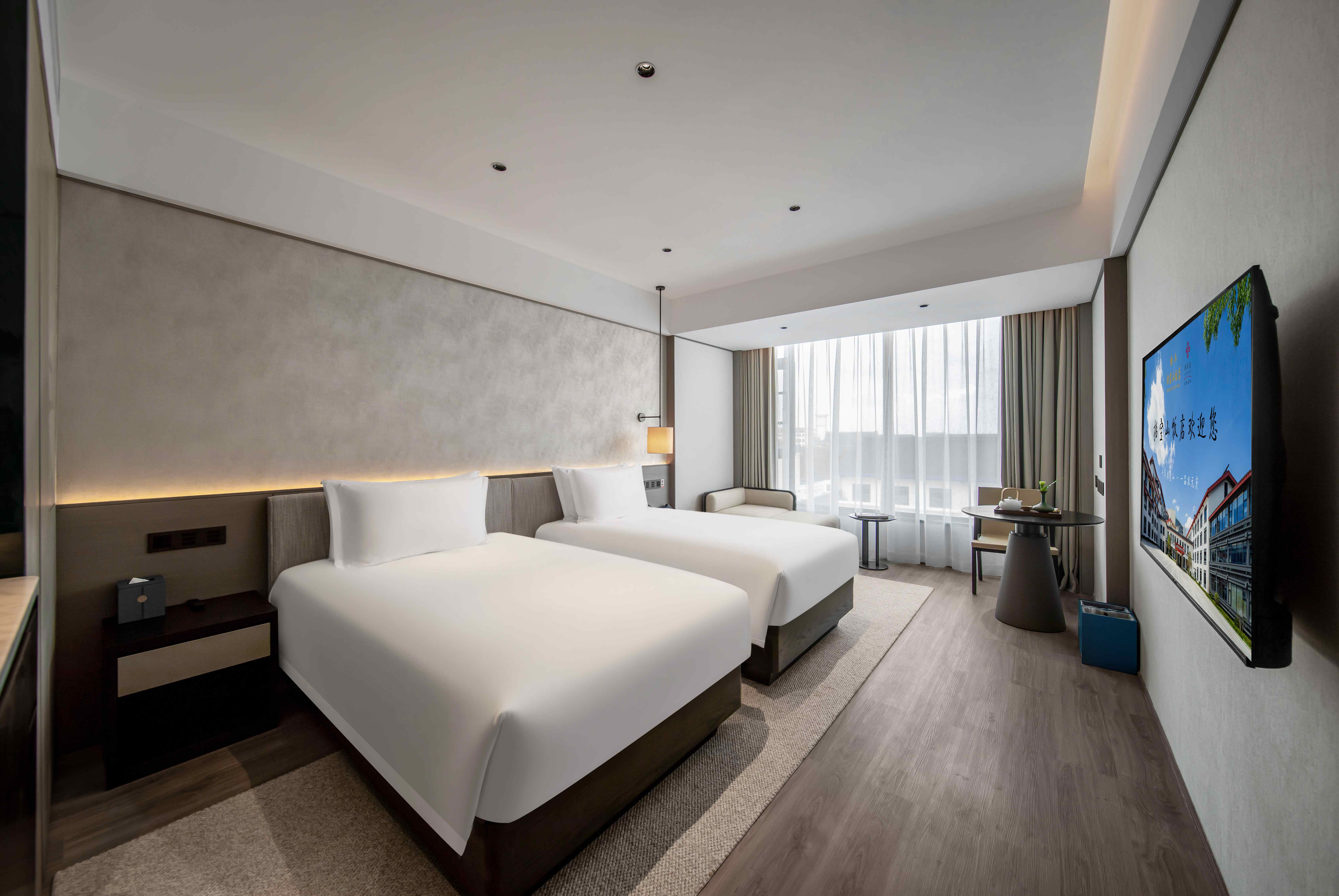 饭店主体建筑共 6 层,总建筑面积 1.4 万平方米,以“登科 及第”为设计灵魂,巧妙融合江南园林的婉约与现代建筑的典雅。 130 间主题客房分为“文魁雅舍”“山海观澜”等系列,房内陈 设科举文化元素与现代智能设施;15 个文化主题包厢(如“鳌 柱”“梓荫”等)及 300 余餐席的多功能宴会厅,可定制“金榜 题名宴”“文脉雅集”等特色场景;配套健身房、自助洗衣房等 设施均植入“文武兼修”理念,如健身器械区装饰古代武科举兵 器纹样,细节尽显文化匠心。