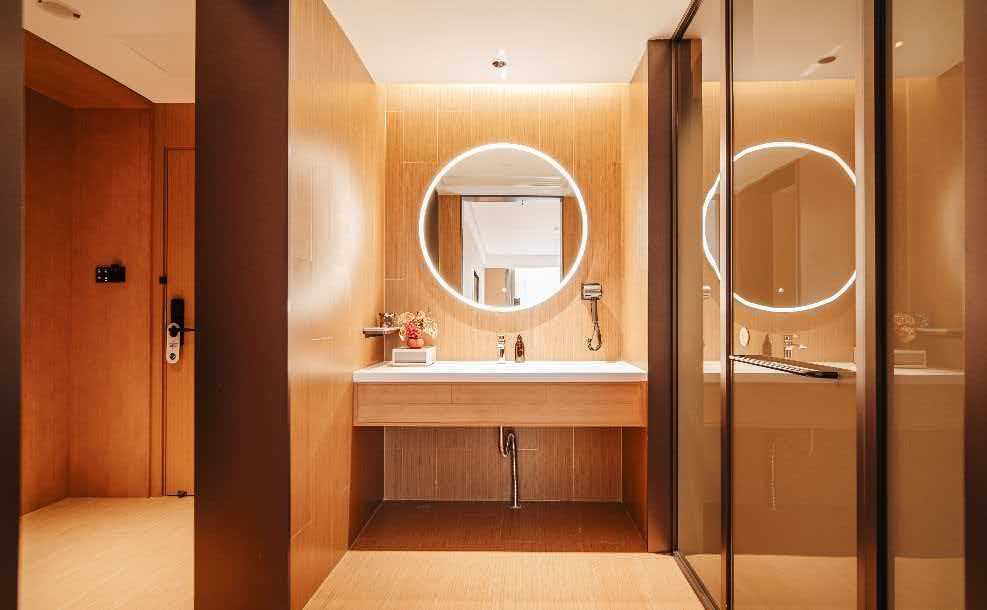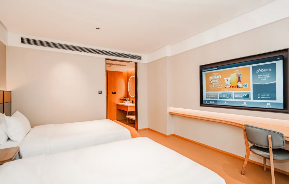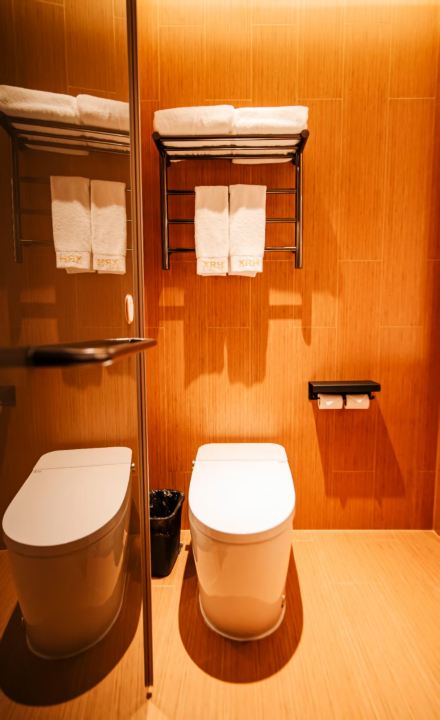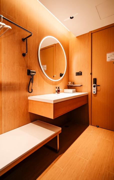 超大免费停车场可停30座以上大巴;智能客控;智能马桶;机器人送物;免费自助洗衣房商用洗衣机烘干机可杀除95%的细菌;免费健身房;自助办公区;自助早餐;中小型会议室;